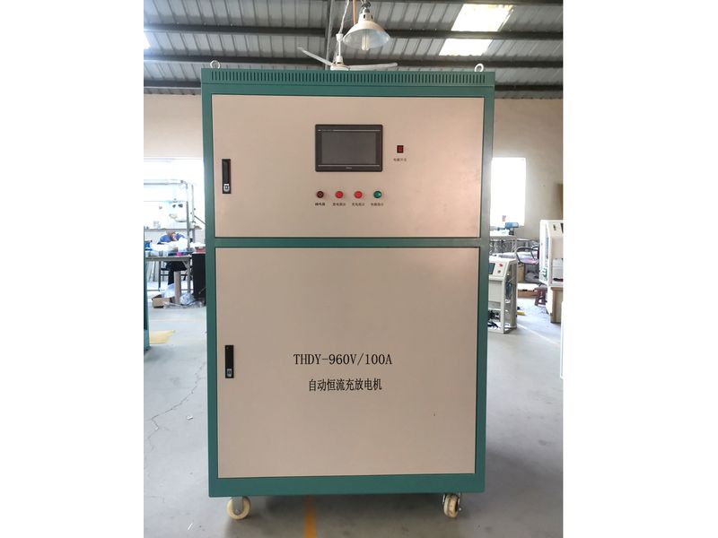 產(chǎn)品介紹:概述   THDY-10-系列硅整流充(放)電機(jī),采用三相全控橋式整流;采用工業(yè)級(jí)觸摸屏,英文顯示,實(shí)時(shí)狀態(tài),不僅具有完好的人機(jī)界面,人機(jī)對(duì)話,操作方便,顯示清晰易懂,而且功能強(qiáng)大,集充電、放電、循環(huán)充放、脈沖、溫度補(bǔ)償?shù)榷喾N工作模式于一體,觸摸屏選用 7 英寸;系統(tǒng)特點(diǎn)   對(duì)電網(wǎng)無(wú)相序要求:A、B、C 三相輸入任意接線(初步調(diào)試過(guò)程中,充電機(jī)報(bào)相序故障,任意調(diào)整2根輸入線即可);  充電中途充電連接線脫落自動(dòng)關(guān)機(jī);  充、放電參數(shù)***設(shè)置好后,如以后充、放相同的蓄電池,每次只需確認(rèn)而無(wú)需重新設(shè)置;  具有脈沖充電功能(能對(duì)落后蓄電池進(jìn)行激活),脈沖寬度、幅度可變、可設(shè)置;  具有溫度補(bǔ)償功能,即充電機(jī)可以根據(jù)環(huán)境溫度變化和蓄電池特性曲線調(diào)整充電電壓;  放電時(shí)電能反饋到電網(wǎng),清潔環(huán)保;  用戶可在充、放電工作過(guò)程中對(duì)所有的參數(shù)工藝參數(shù)進(jìn)行查看,避免誤操作;  具有掉電存儲(chǔ)功能,來(lái)電自動(dòng)恢復(fù)到掉電前工作狀態(tài),實(shí)現(xiàn)無(wú)人值守;  具有暫停功能,確保連續(xù)運(yùn)行;  具有多種操作方式:手動(dòng)操作、微機(jī)控制、觸摸屏控制、PC 機(jī)操作四種方式?! ≡摴枵麟娫醇瓤梢宰鳛槌浞烹姍C(jī)使用,也可以作為大功率電源使用。常用規(guī)格:  訂貨須知:  請(qǐng)注明型號(hào),可按客戶要求電壓電流生產(chǎn)訂制。
